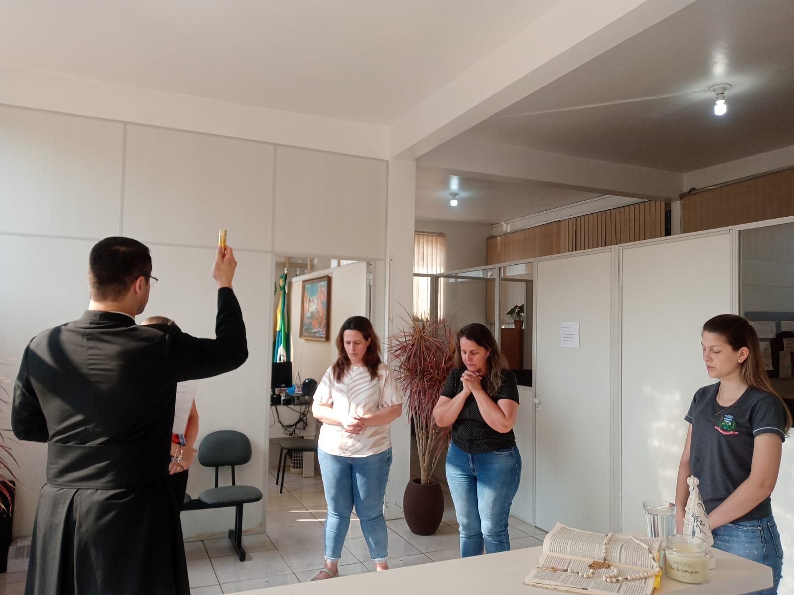Na manhã de hoje (25), o Irmão Aldo Alvarez esteve nas dependências da Prefeitura Municipal, Secretarias de Educação, Assistência Social, CRAS e conselho tutelar, abençoando funcionários e o ambiente de trabalho.