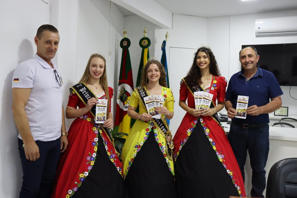 O Prefeito Municipal Elias Segalla, recebeu um convite muito especial na manhã de hoje (19). As soberanas da 23ª Oktoberfest de Alpestre, Rainha Sandra Letícia Noskoski, primeira princesa Amanda Carolina Pogorecki e a segunda princesa Evelyn Letícia Erthal Menzem, estiveram na Prefeitura Municipal convidando para o evento.