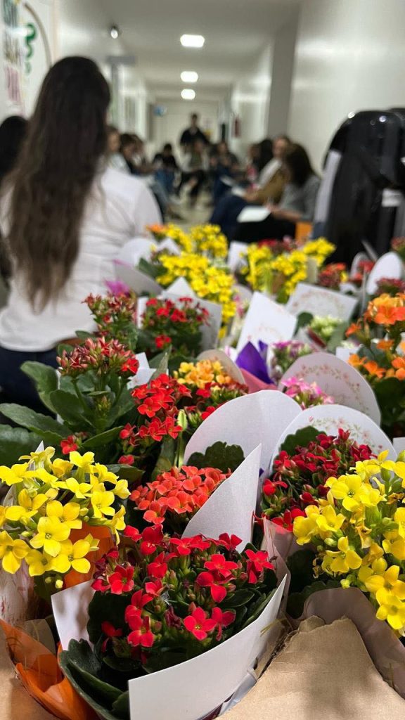 Durante a ação, as mães que atuam na área da saúde receberam flores como símbolo de carinho, além de uma mensagem especial preparada pela equipe. O momento foi marcado por sorrisos, emoção e uma atmosfera de gratidão.