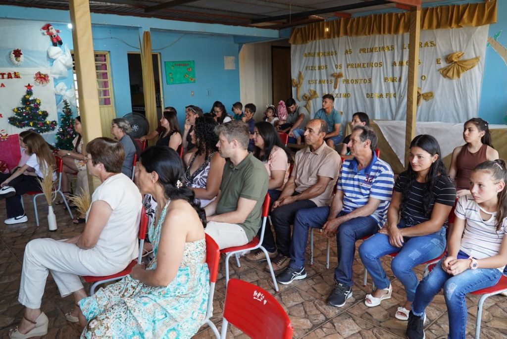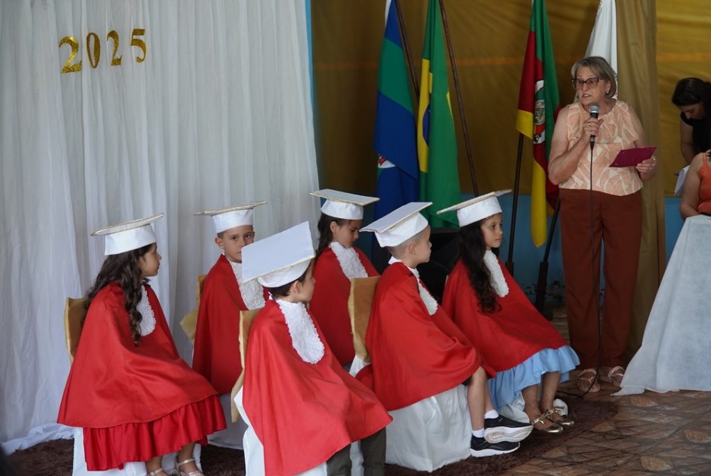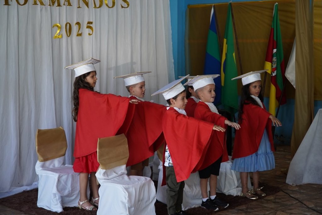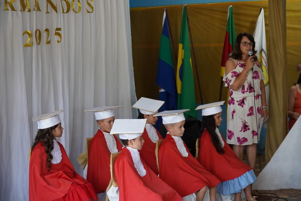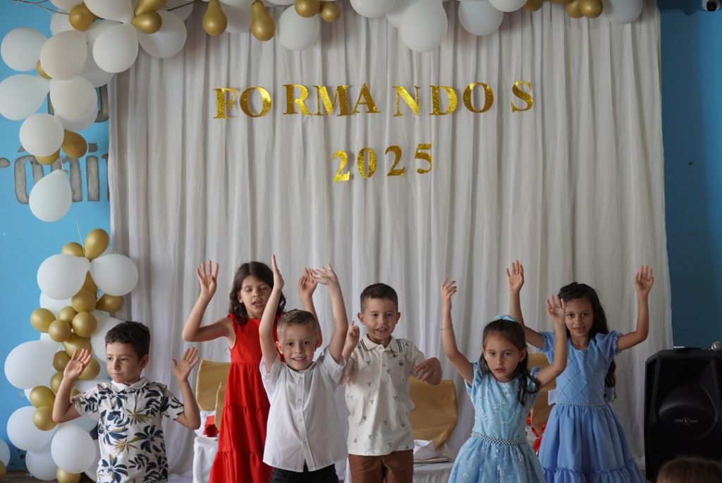 A cerimônia foi marcada por apresentações e mensagens de agradecimento, evidenciando o aprendizado e o crescimento das crianças ao longo do ano. Para as famílias, o evento representou um momento de orgulho e emoção ao verem seus filhos avançando para uma nova fase escolar.
