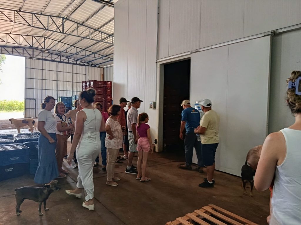 O roteiro iniciou no Sol Nascente Anzol e Gourmet e seguiu para a Cabana Cheiro de Mato, onde o grupo conheceu ambientes aconchegantes e de forte ligação com a natureza. Em seguida, visitaram uma plantação de pitaias, que conta com mais de 1.500 pés cultivados, impressionando pela estrutura e pelo cuidado da produção.