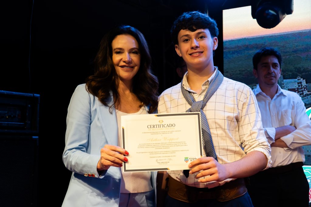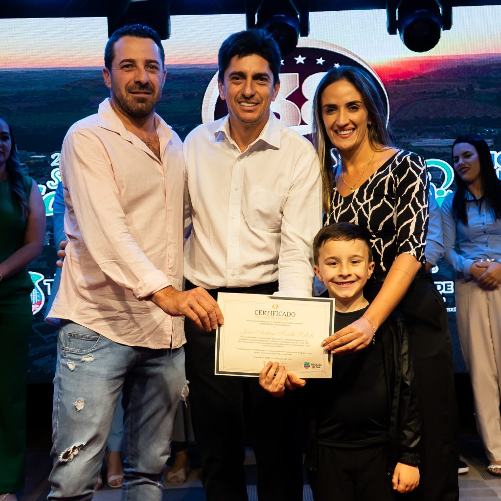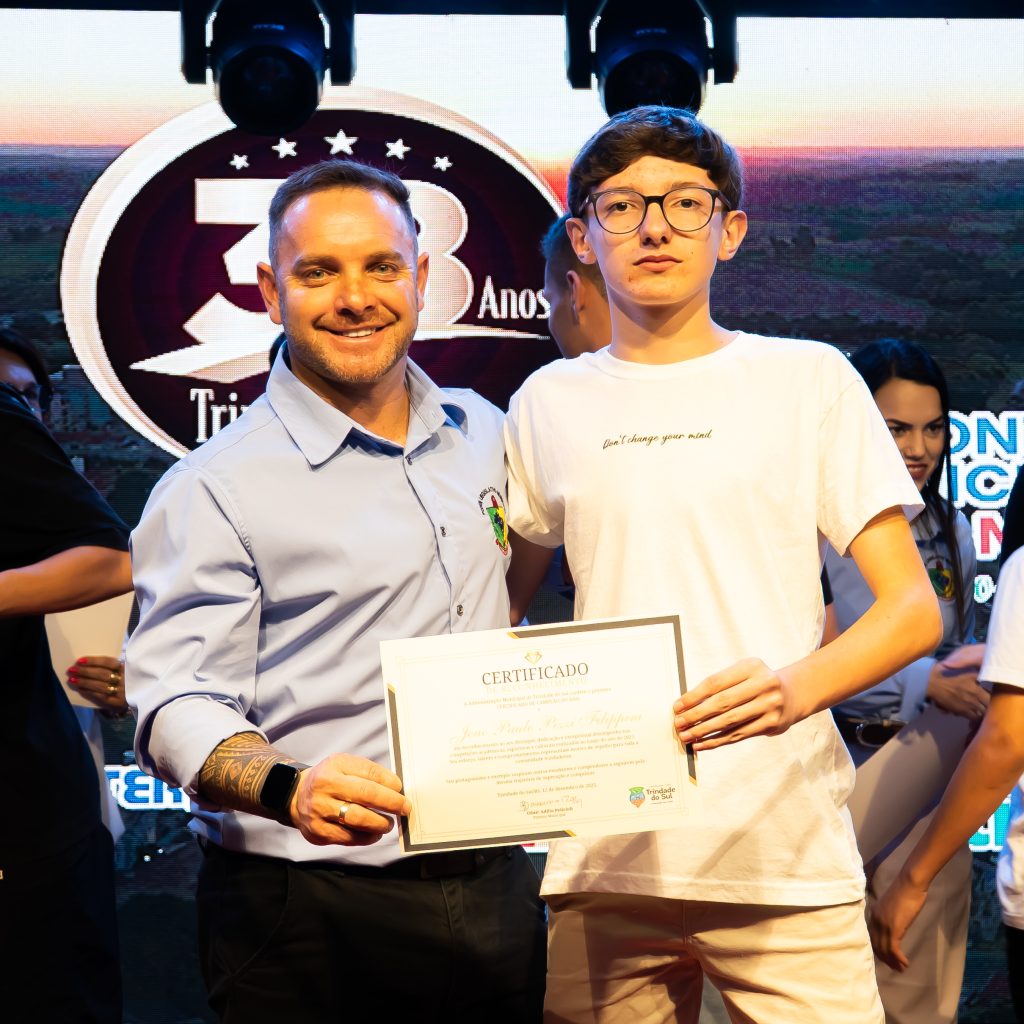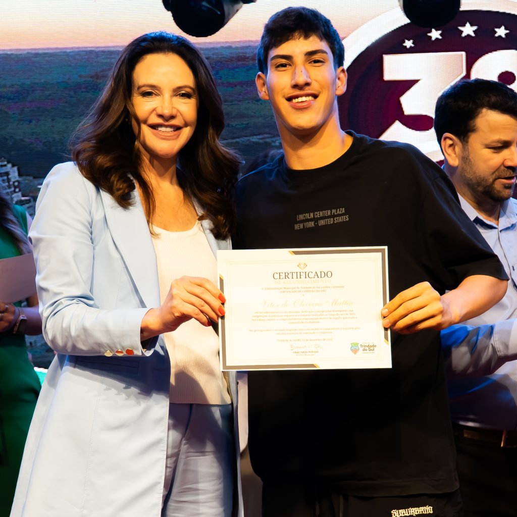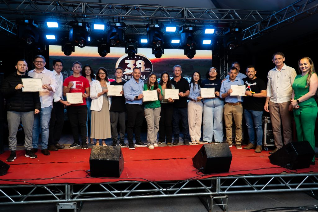 A programação da noite também foi marcada por momentos culturais, como a apresentação do Coral Municipal Águia, e pela homenagem aos Campeões do Ano 2025, reconhecendo talentos que se destacaram na educação, cultura, esporte e em competições regionais, estaduais, nacionais e internacionais, levando o nome de Trindade do Sul além de suas fronteiras.